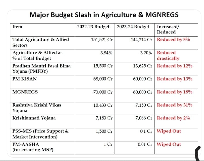 A quick summary table on major budget slash in Agriculture and MGNREGS